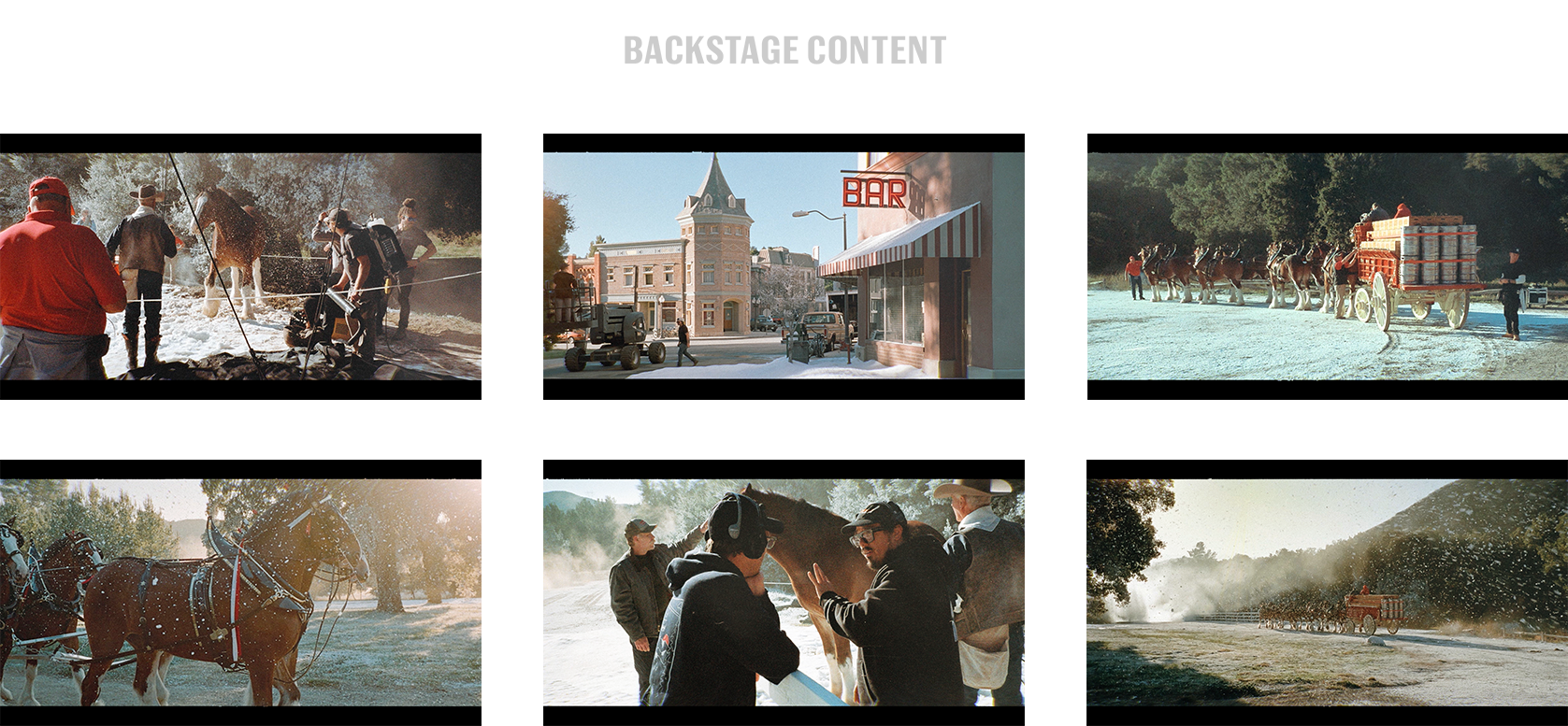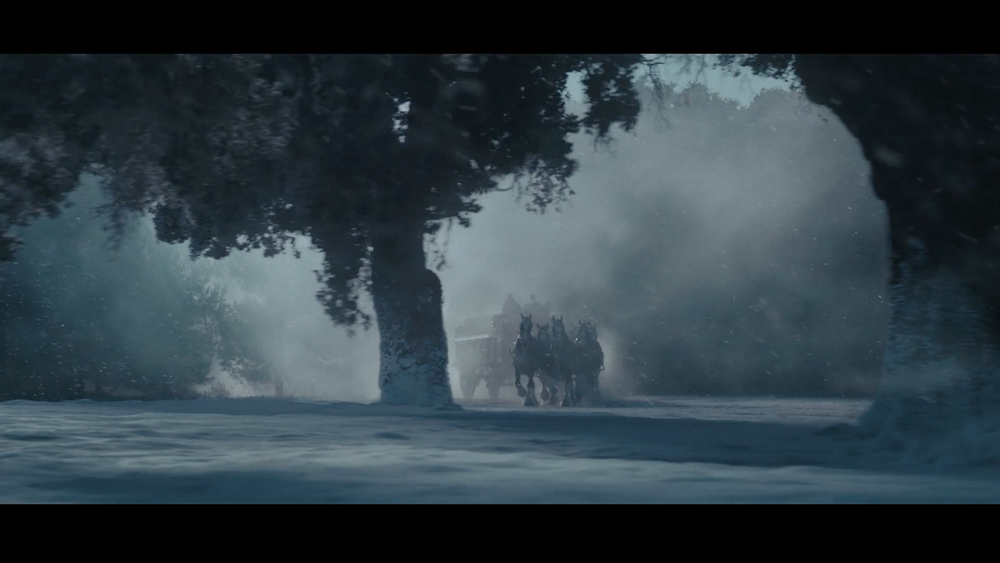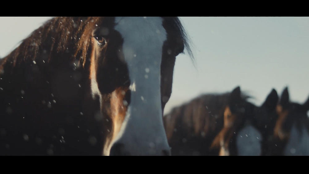 Using CGI, VFX, and 2D elements, we turbocharged the intensity of each scene in our film. Snow outside became heavier and more blizzard-like. Ordinary roads turned into treacherous terrain for the Clydesdales to travel. The strategic removal of light turned a quiet night in an American town into a high-octane race against the clock.